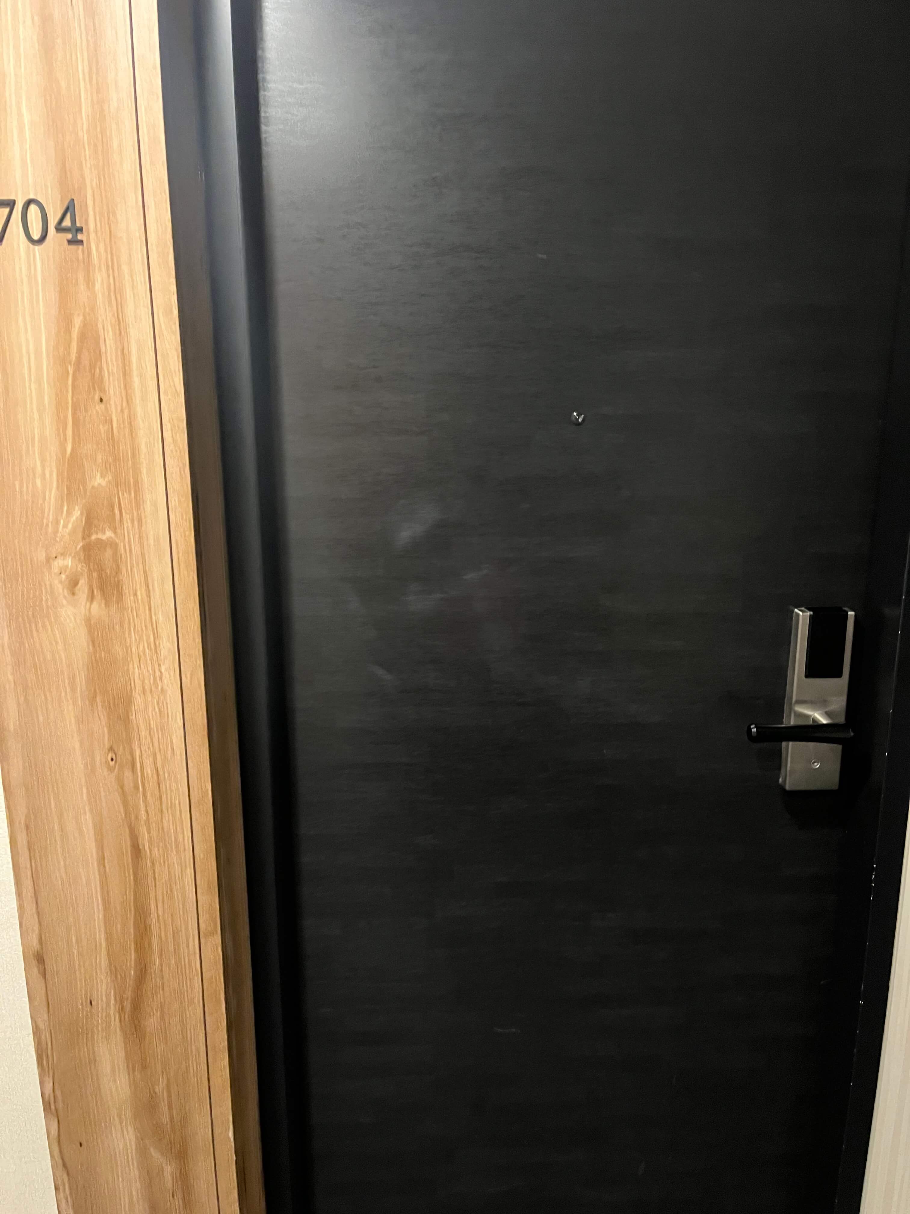 사진에 보이는 문이 화장실 문이고 그 앞에 캐리어를 펼쳐 놓으니 더 공간이 꽉 찹니다.