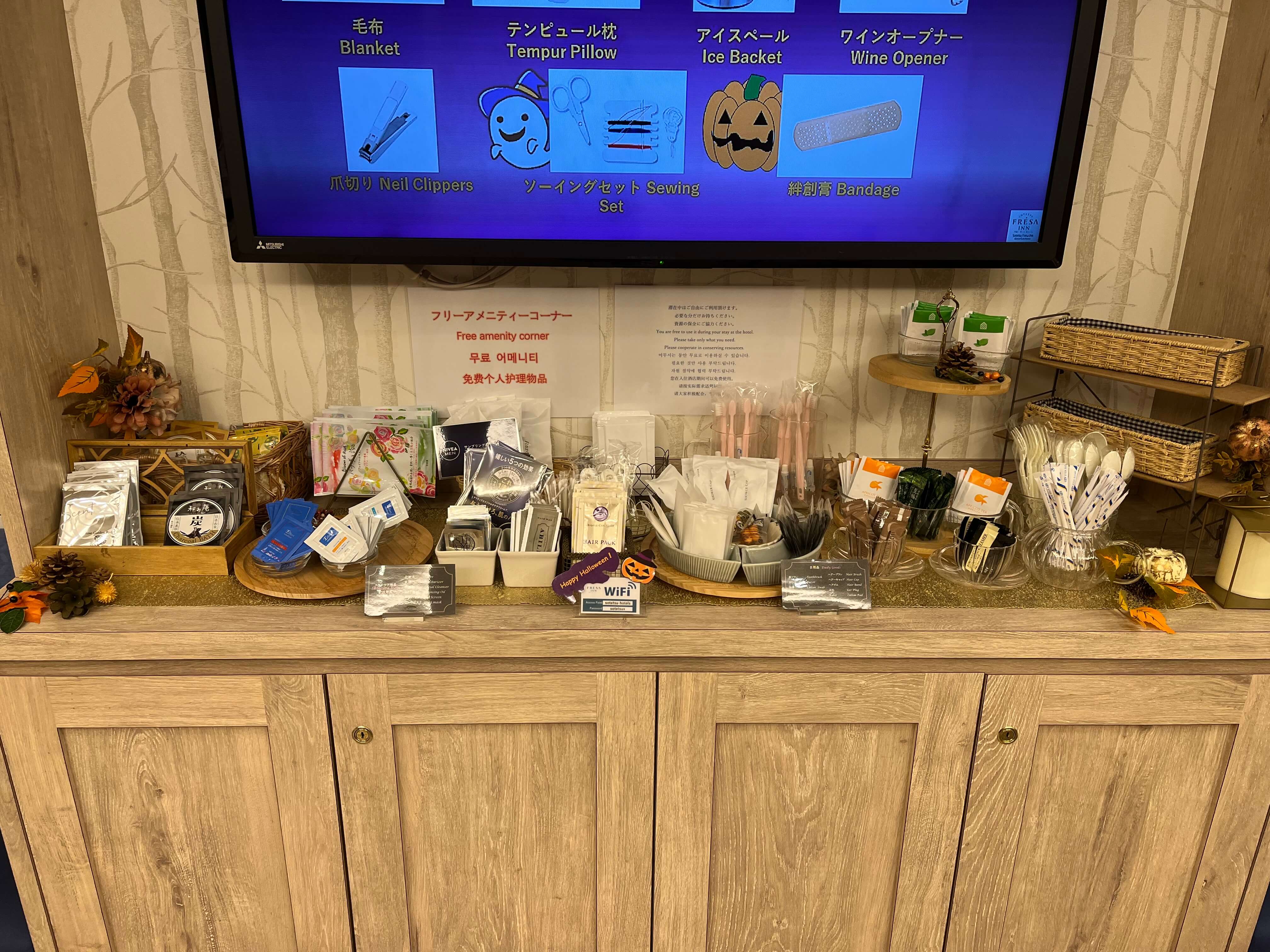 무료 어메니티가 준비되어 있고, 자유롭게 가져갈 수 있는 시스템입니다.