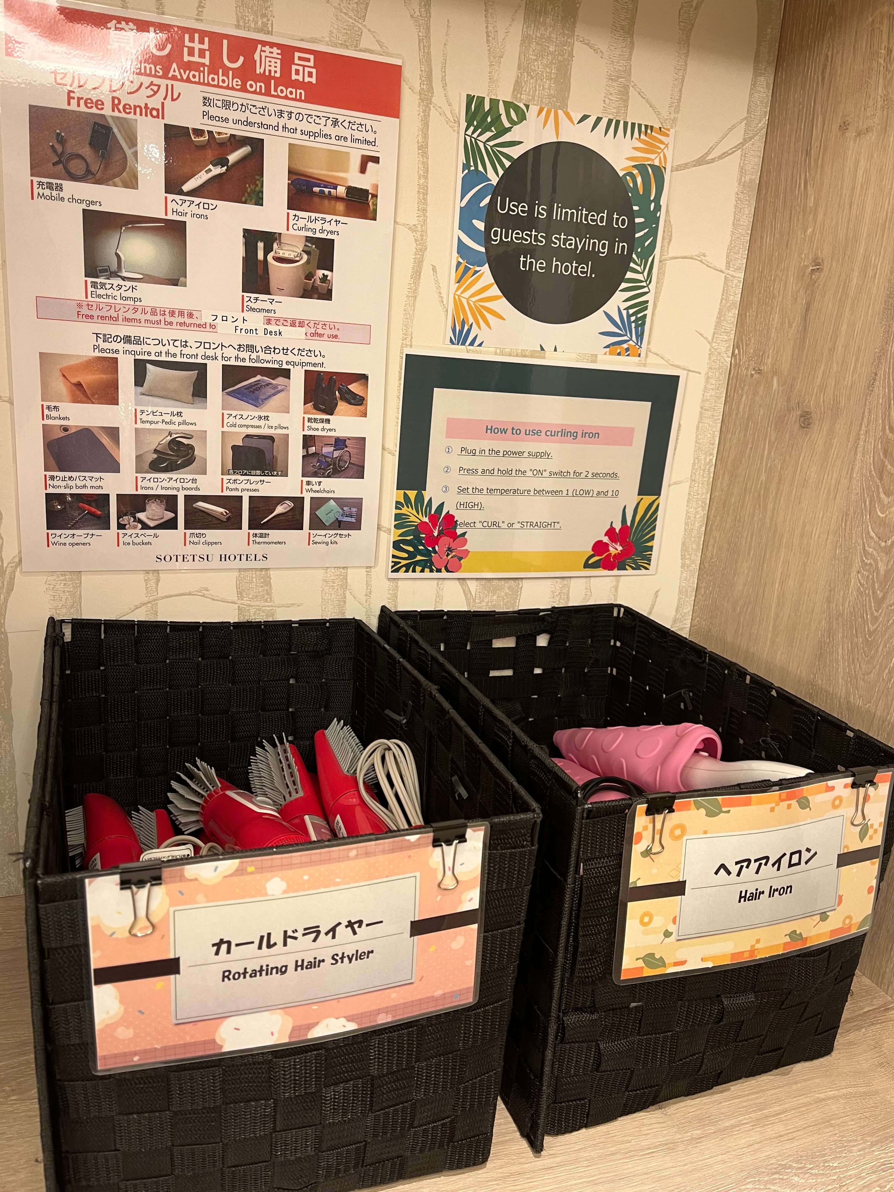 무료 어메니티뿐 만 아니라 고데기, 헤어 스타일러까지 자유롭게 빌려 갈 수 있습니다.