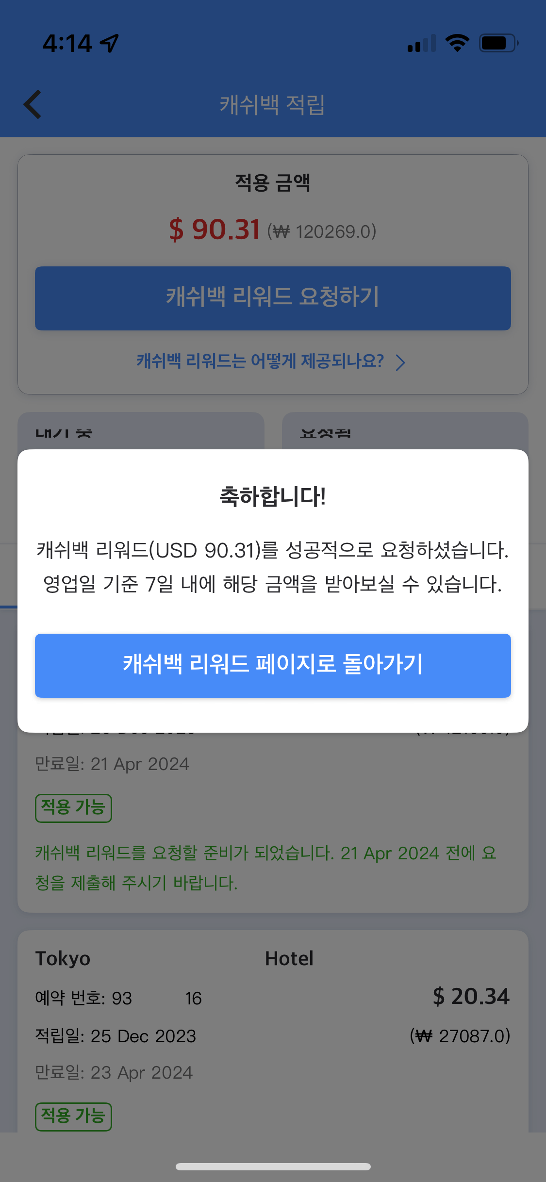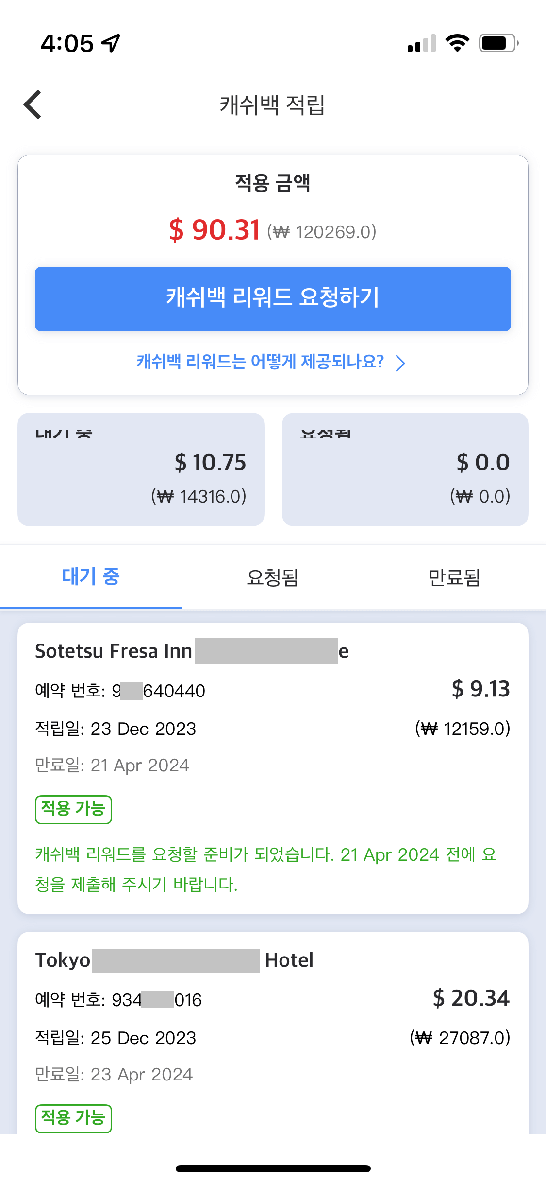 아고다 캐쉬백 리워드는 체크아웃 60일이 지나서 체크 아웃 날짜로 최대 120일 동안 요청이 가능한데요,