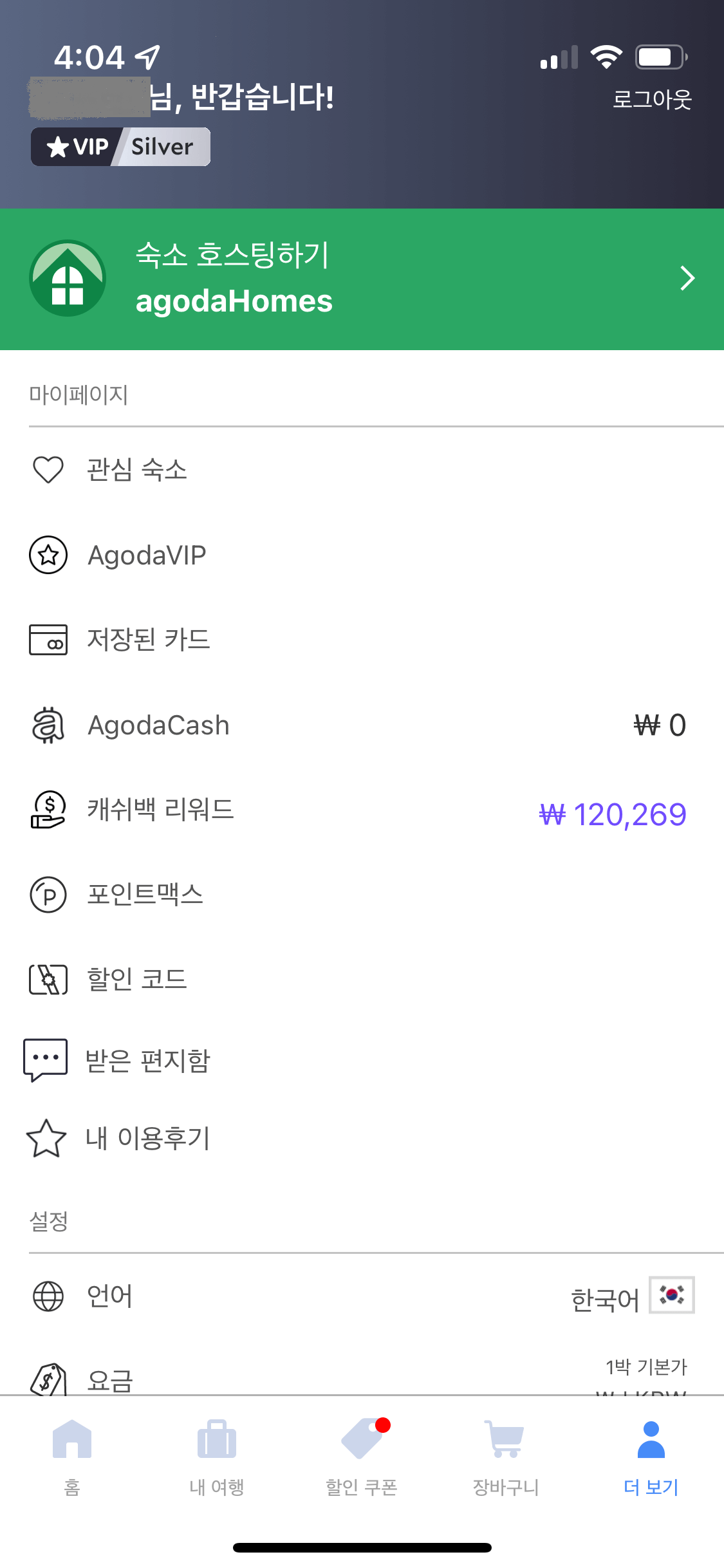 아고다 어플을 다운 받은 후 로그인을 합니다.