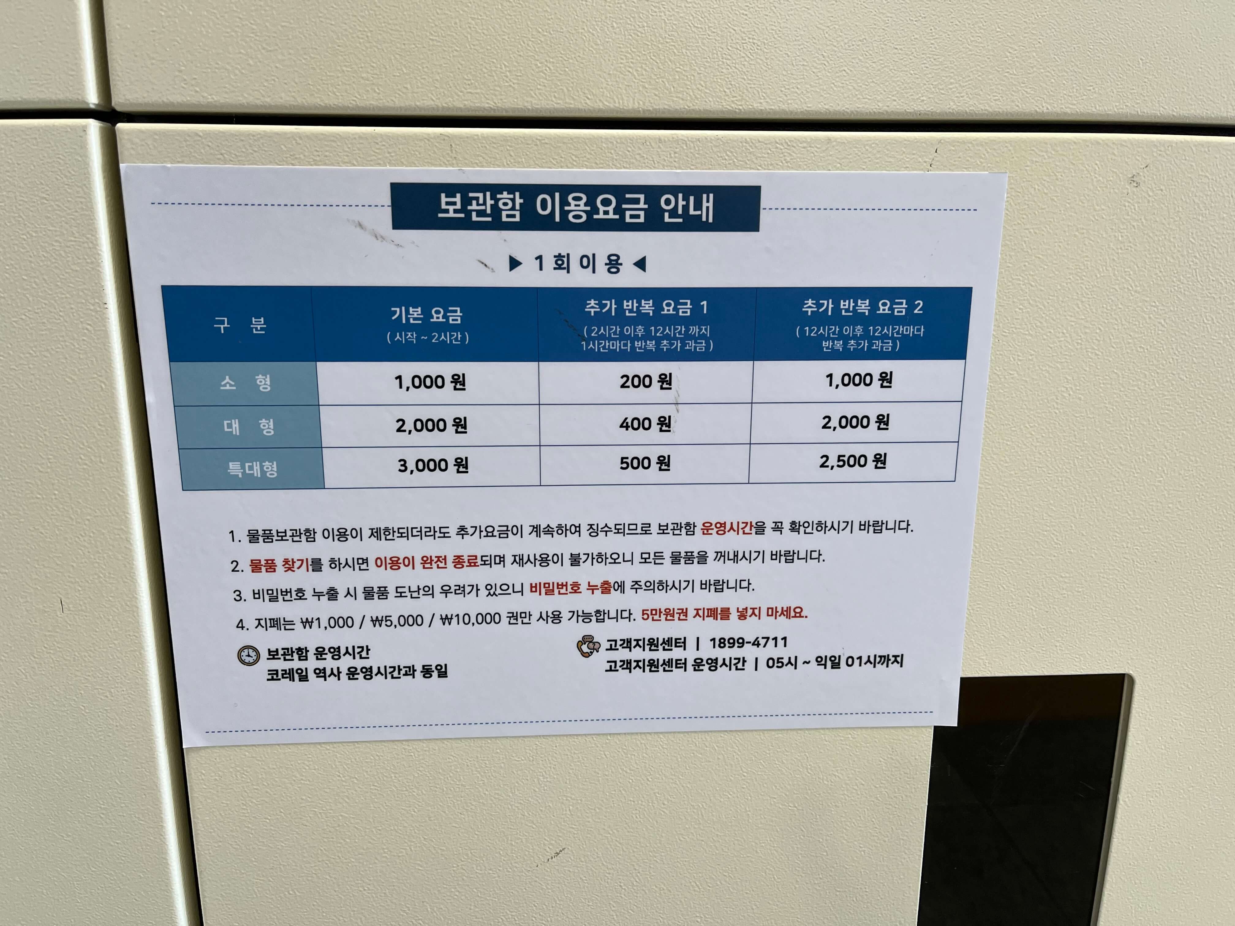크기와 시간으로 추가 요금이 발생하오니 이용요금 안내판 확인 참고 하시길 바랍니다.