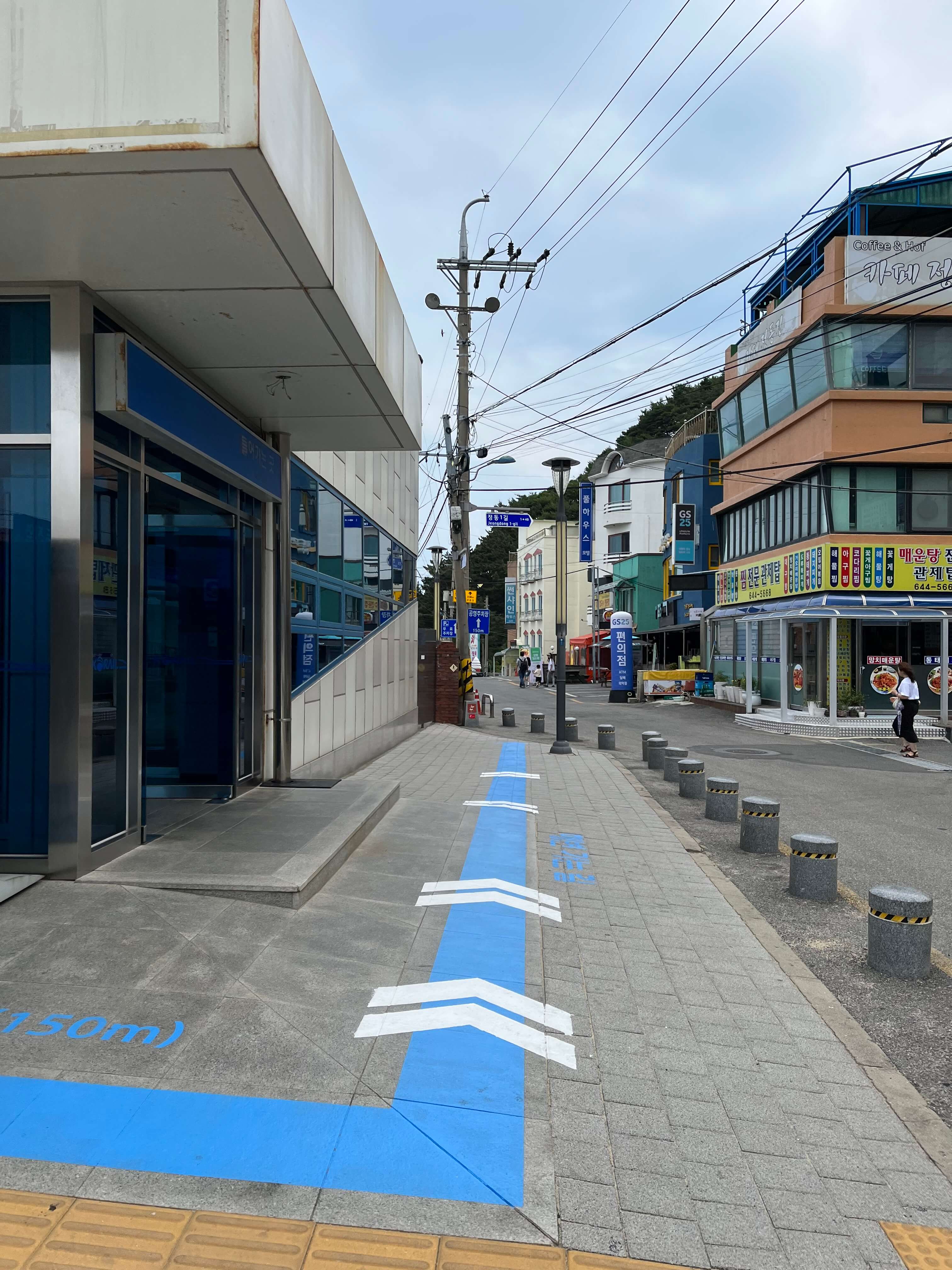 바닥 유도선을 따라 쉽게 찾아갈 수 있도록 알려주고 있습니다.