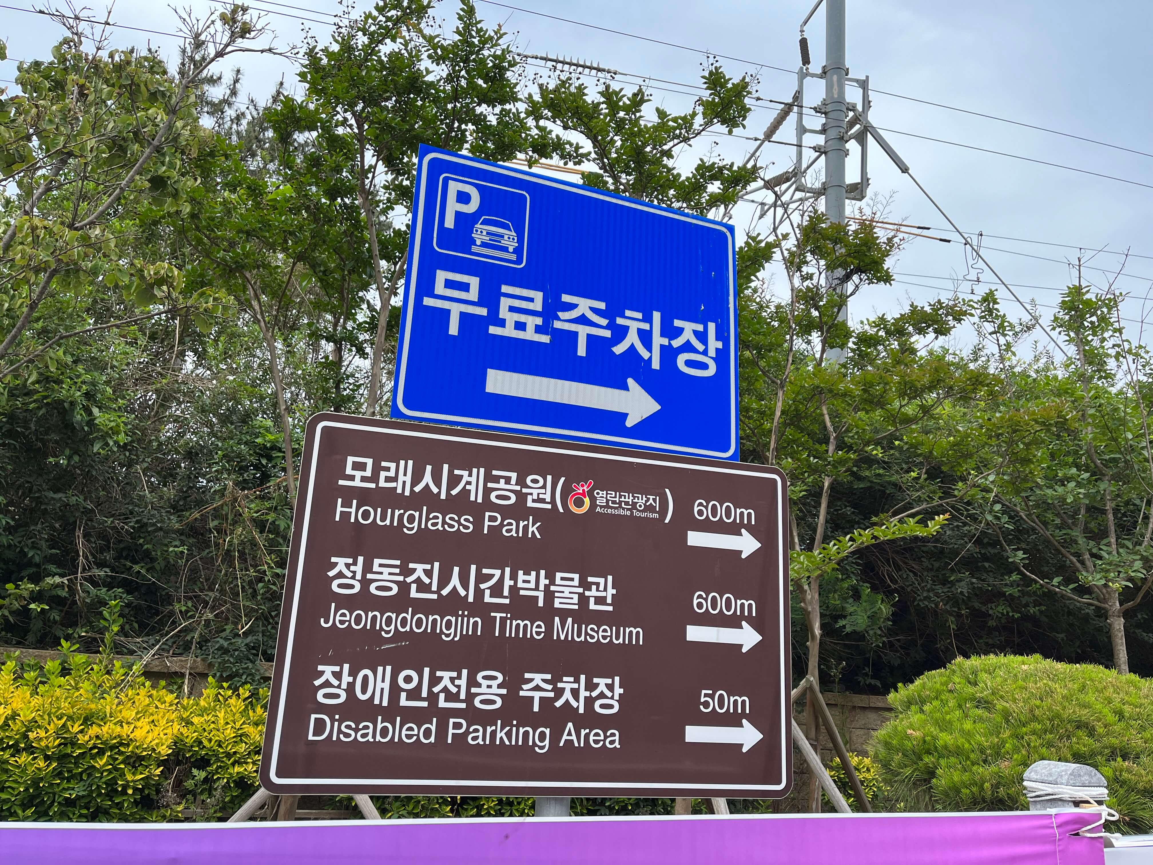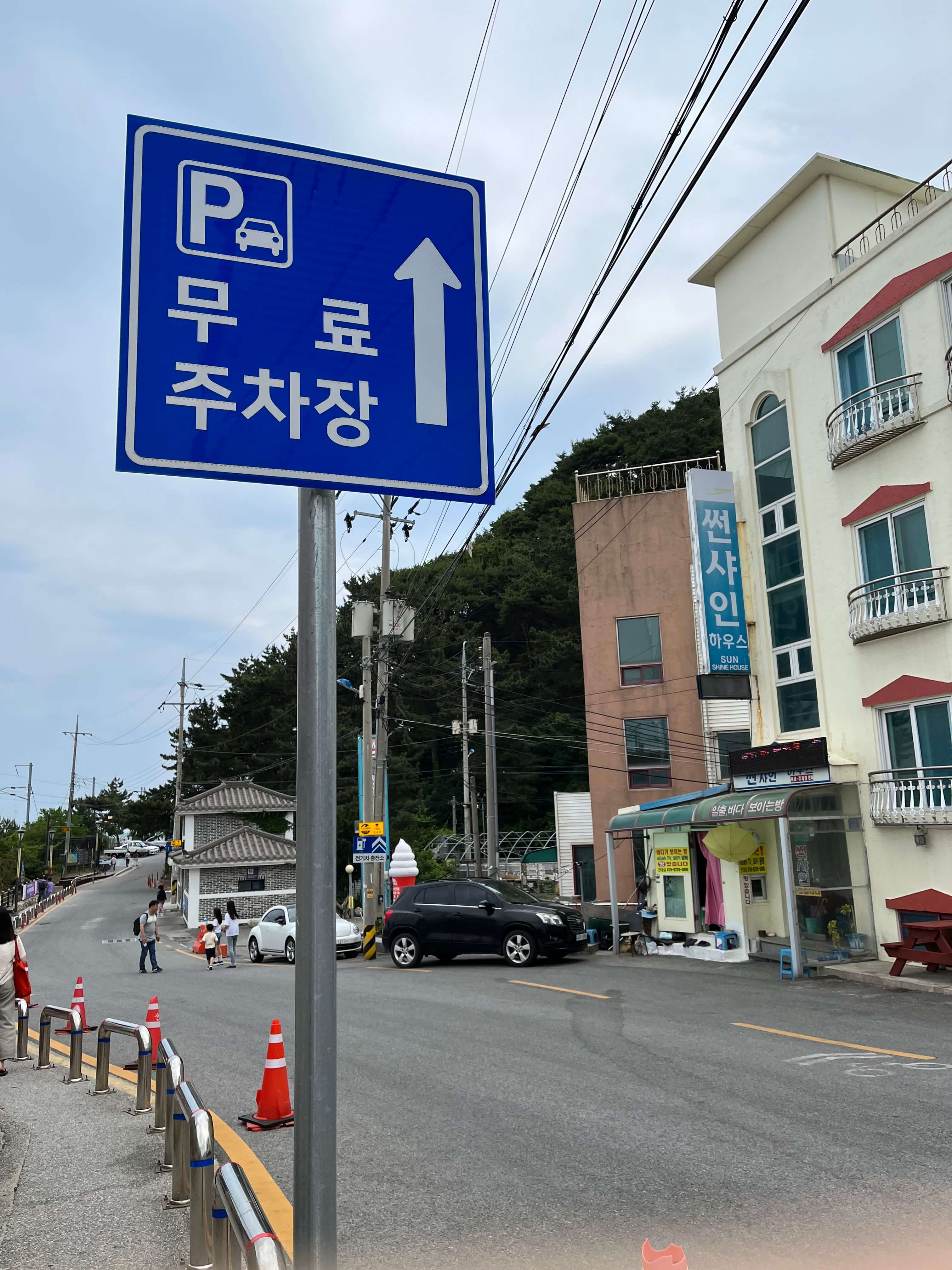 바닥 유도선을 쭈욱 따라오다 보면 무료 주차장 표시판이 보입니다.