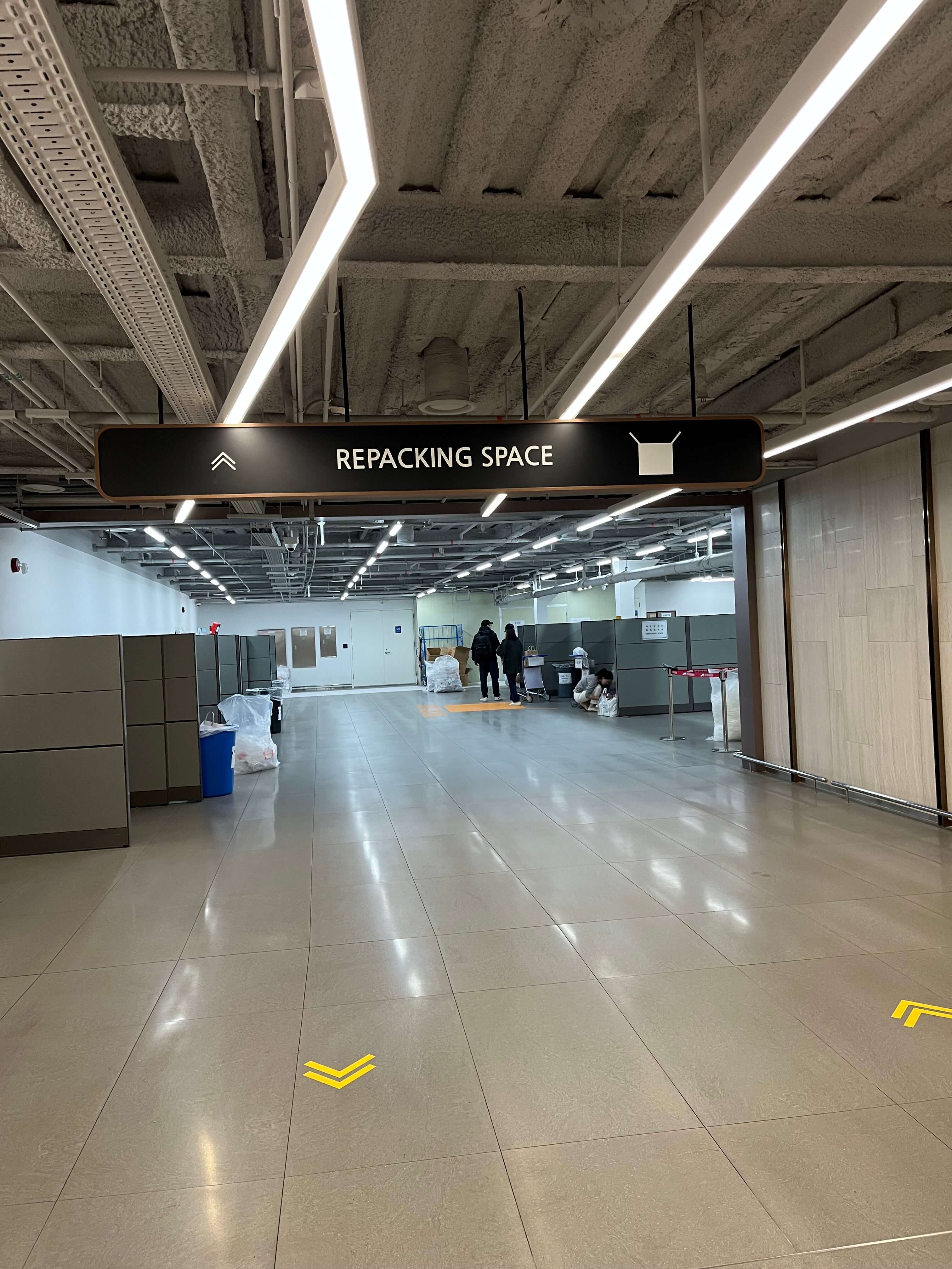 수령하는 곳에서 왼쪽으로 가시면 리패킹하는 공간이 있습니다.