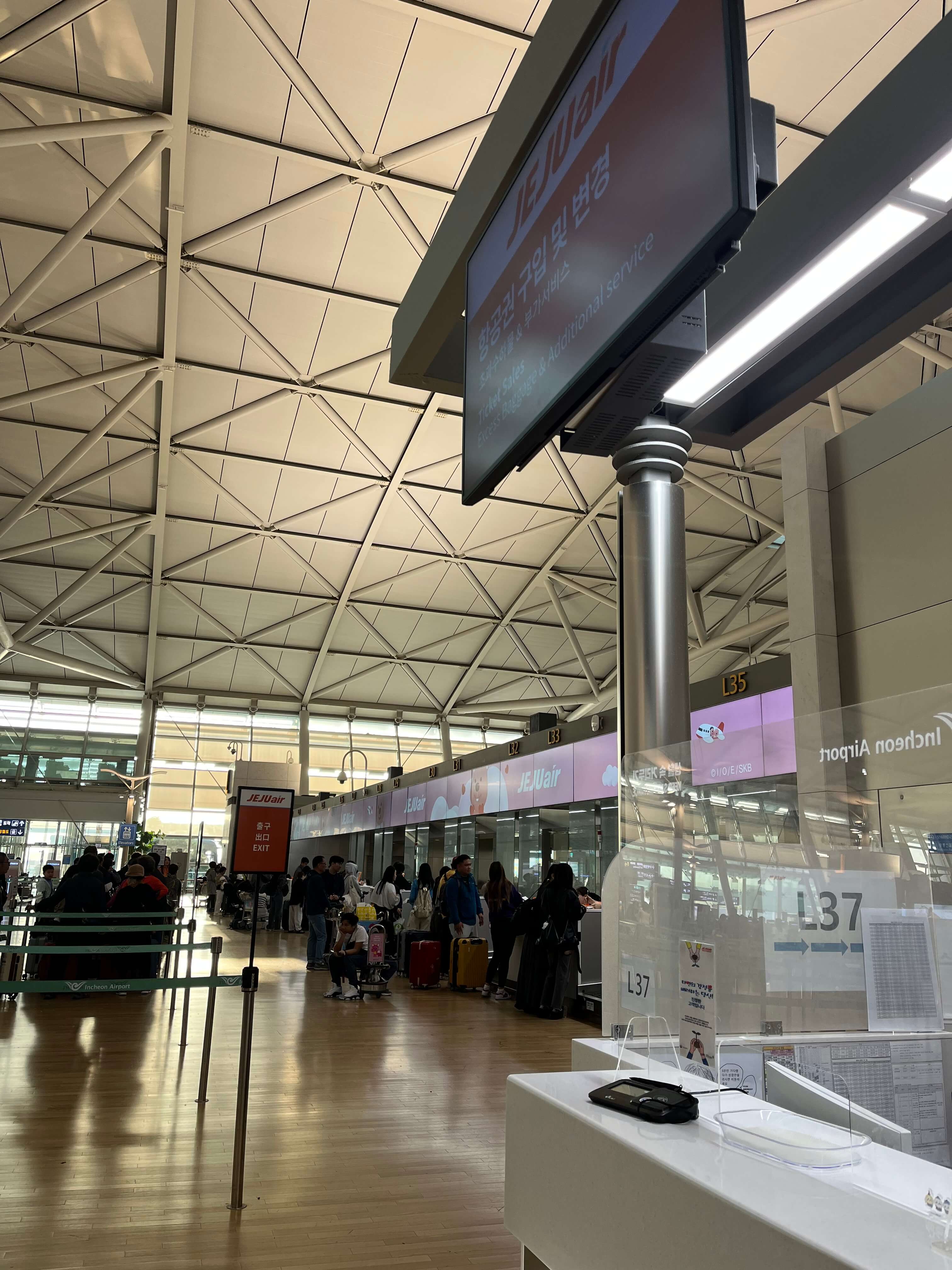 제주항공은 인천공항 1터미널 L카운터입니다.
