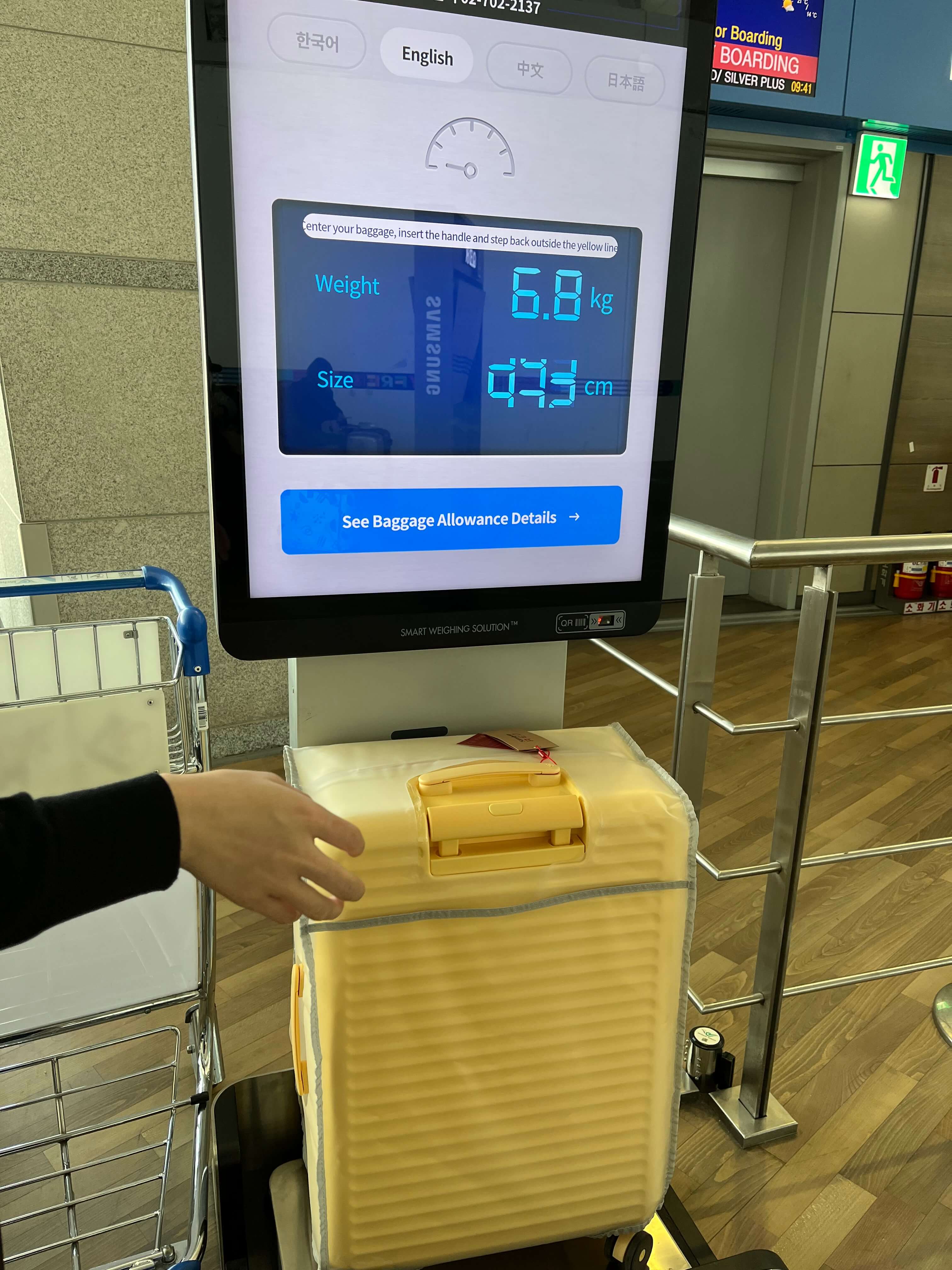 수하물 무게는 6.8kg이 나왔습니다.
